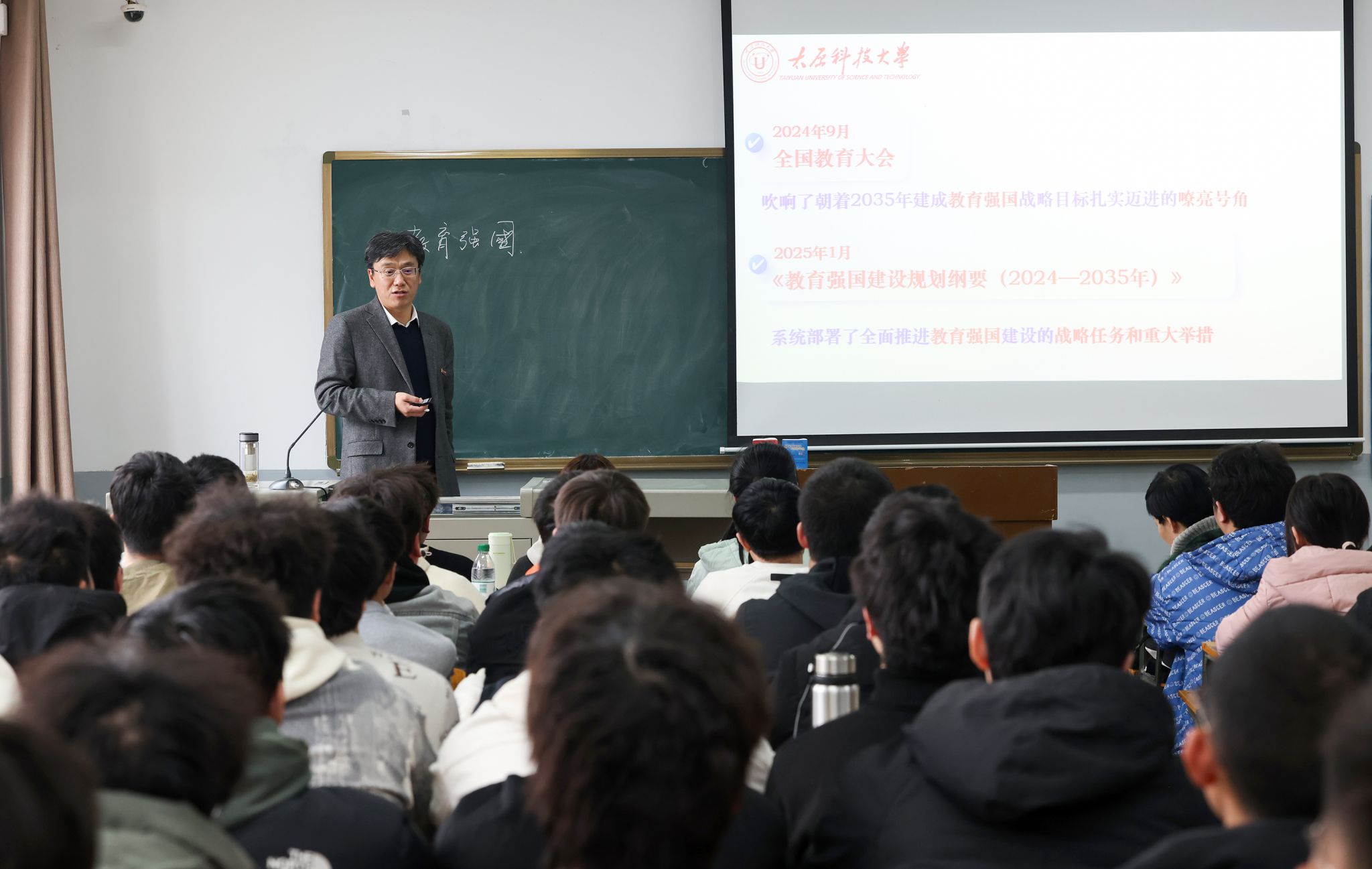 3月7日下午,校党委副书记、校长梁卫国走上讲台,以“逐梦强国建设,奋进出彩人生”为题,为pp电子官网2023级机自专业学生讲授了一堂内涵丰富、启智润心的思政课。