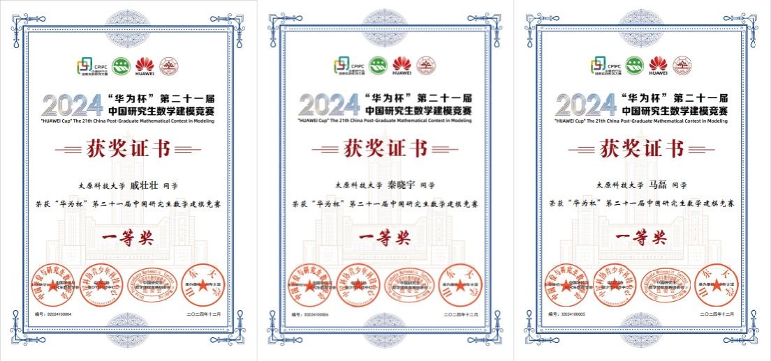 2024年“华为杯”第二十一届中国研究生数学建模竞赛于9月顺利举行,pp电子官网共有31支队伍、90余名研究生参加,经过激烈竞争,pp电子官网参赛队伍最终获一等奖1项,二等奖4项,三等奖5项。