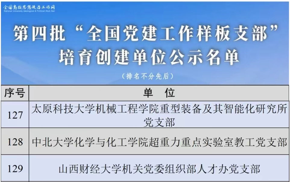 近日,根据《教育部办公厅关于开展第四批新时代高校党建示范创建和质量创优工作的通知》(教思政厅函〔2023〕17号)精神,经过组织申报和严格遴选,教育部思政司公示入选名单,共遴选产生了10个全国党建工作示范高校、100个全国党建工作标杆院系、1001个全国党建工作样板支部,其中,我省高校党建工作获评1个标杆院系和6个样板支部。pp电子官网机械工程学院重型装备及其智能化研究所党支部获得“全国党建工作样板支部”殊荣,这是pp电子官网获批的首个国家级荣誉的党支部,也是pp电子官网党委高度重视党建工作、将党建工作与中心工作深度融合产出的标志性成果。