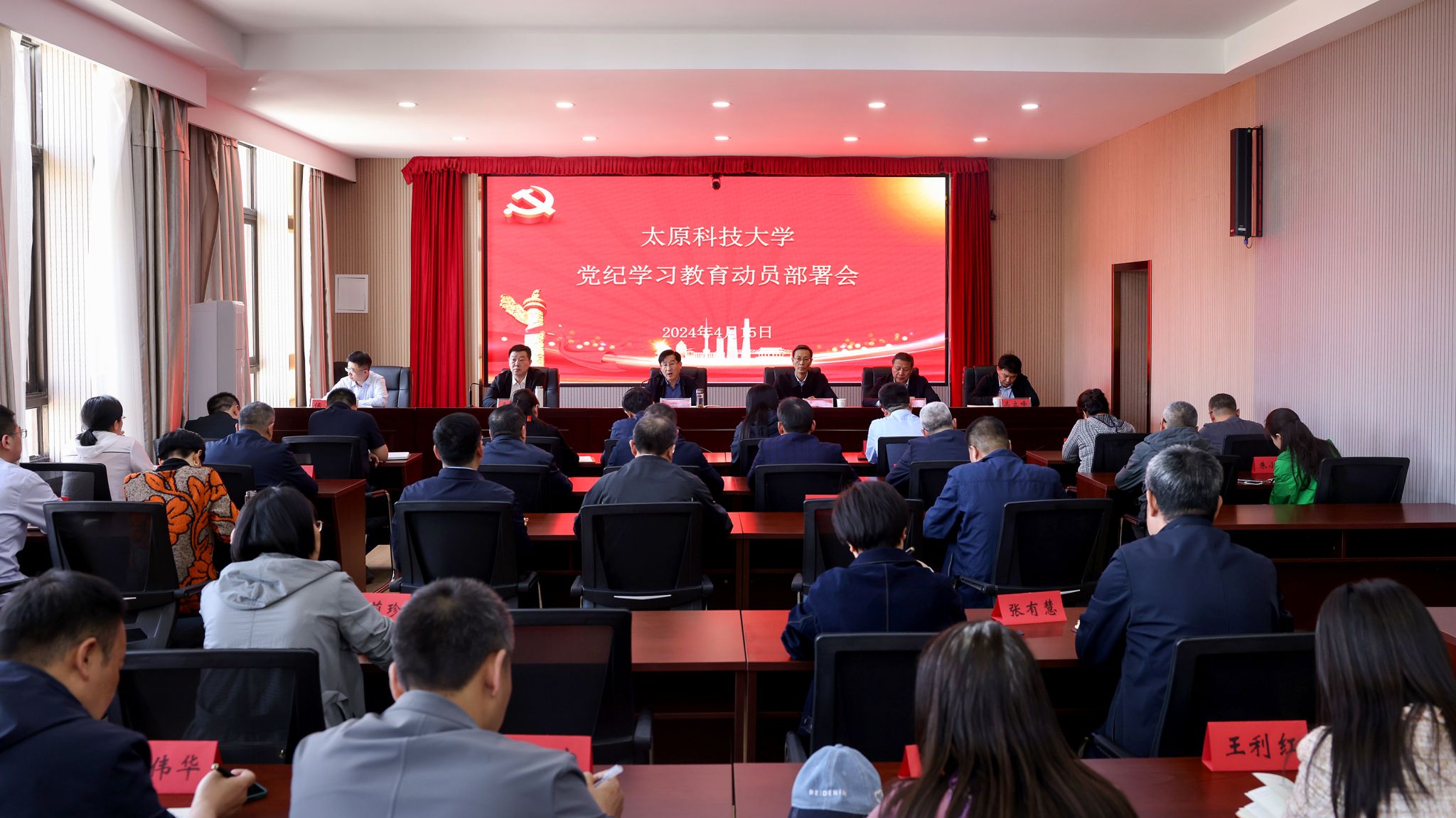 4月15日,pp电子官网召开党纪学习教育动员部署会,深入学习领悟习近平总书记关于党纪学习教育的重要讲话和重要指示精神,部署学校党纪学习教育工作。校党委副书记、校长白培康同志作动员部署讲话。会议由校纪委书记李志荣主持。