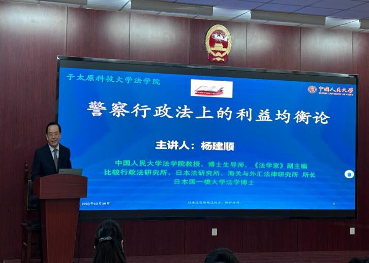 讲座中,杨建顺教授以案说法向大家介绍了警察行政法的基本概念和理论框架,重点强调了利益均衡在该领域中的重要性。通过具体案例和域外理论对利益均衡论进行深入分析,详尽阐述了利益均衡论在警察行政法上的应用可行性。同时,杨教授还对警察权力与公民权益之间的平衡、警察行政执法与个人权利的平衡等关键问题展开了探讨。