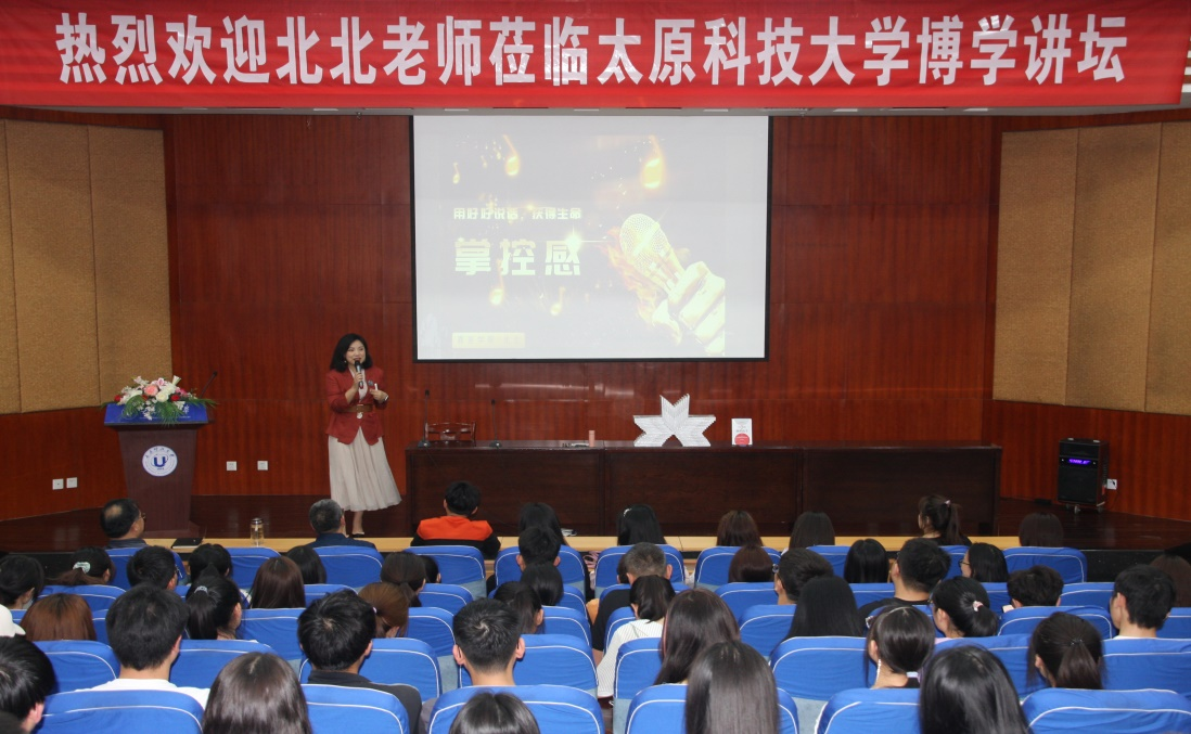 2021年5月19日下午,“金话筒”奖获得者、畅销书作家北北在pp电子官网图书六层报告厅作了题为“从不会说话到演讲高手”的主题讲座,pp电子官网200多名师生聆听讲座。本次活动由图书馆、校团委、人文社科学院、山西图书大厦共同主办。