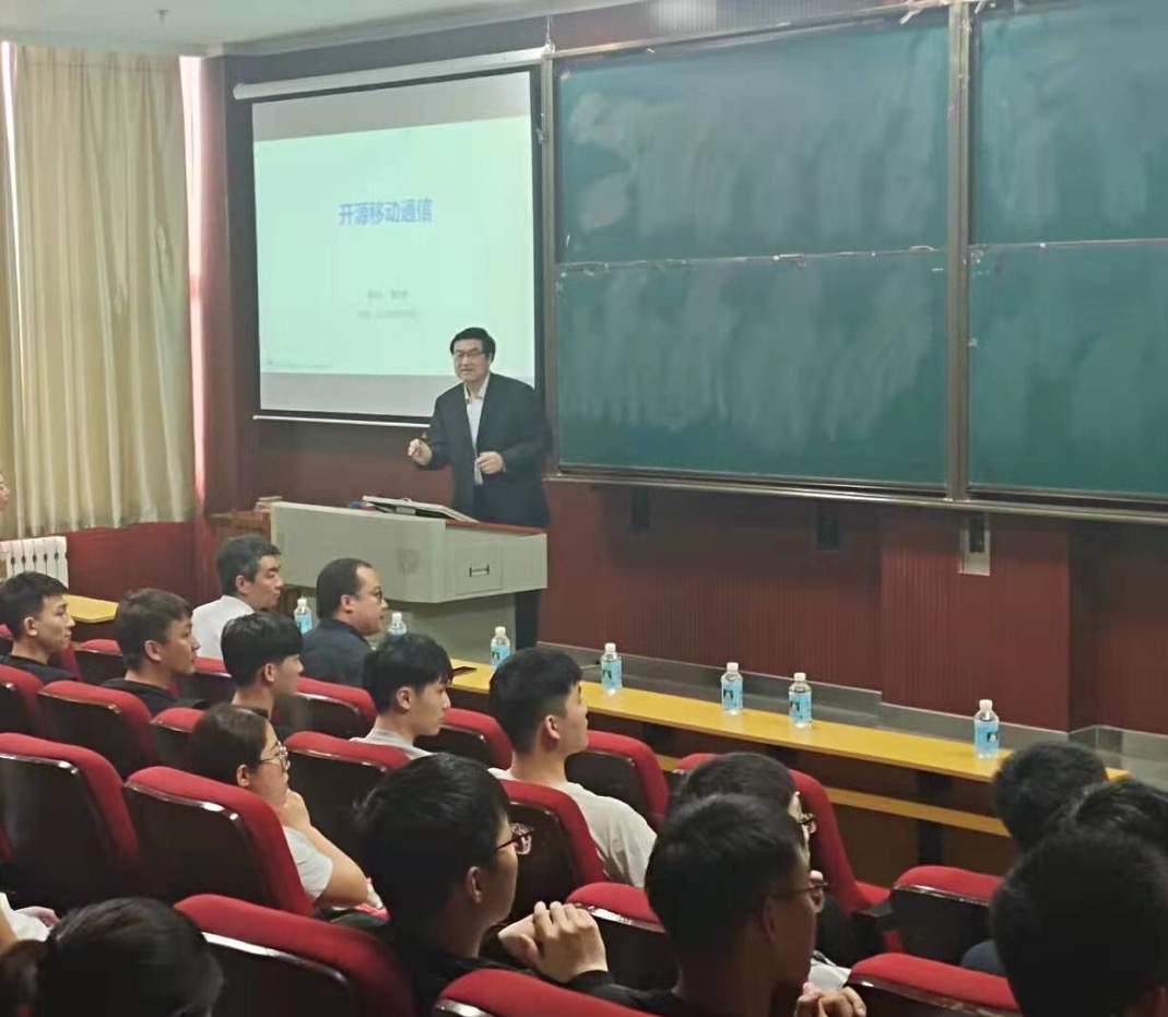2021年5月26日,北京邮电大学原副校长温向明教授携团队成员一行5人来pp电子官网进行交流,并在综合楼九阶做了题为“开源移动通信”的学术报告。pp电子游戏平台官网谢刚副校长、电子信息工程学院赵志诚院长会见,就北京邮电大学和pp电子游戏平台官网未来合作空间、合作模式以及合作内容等方面进行了探讨。谢刚副校长主持了学术报告会,来自本校和外校的70余名教师及研究生聆听了此次报告。
