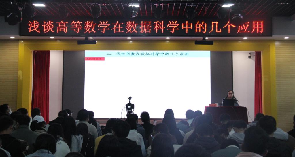 为培养学生的数学学习思维,提高数学能力素养,使学生对数学的前景与应用,及与其他学科的联系有更为深刻的了解,10月26日下午4时,校团委特邀中国工业与应用数学学会理事、山西省数学会常务理事温瑞萍教授在综合楼五楼活动中心作《高等数学在数据科学中的几个应用》专题学习报告。校团委书记彭英与150余名学生共同聆听此次讲座,线上2000余人同步收看直播。
