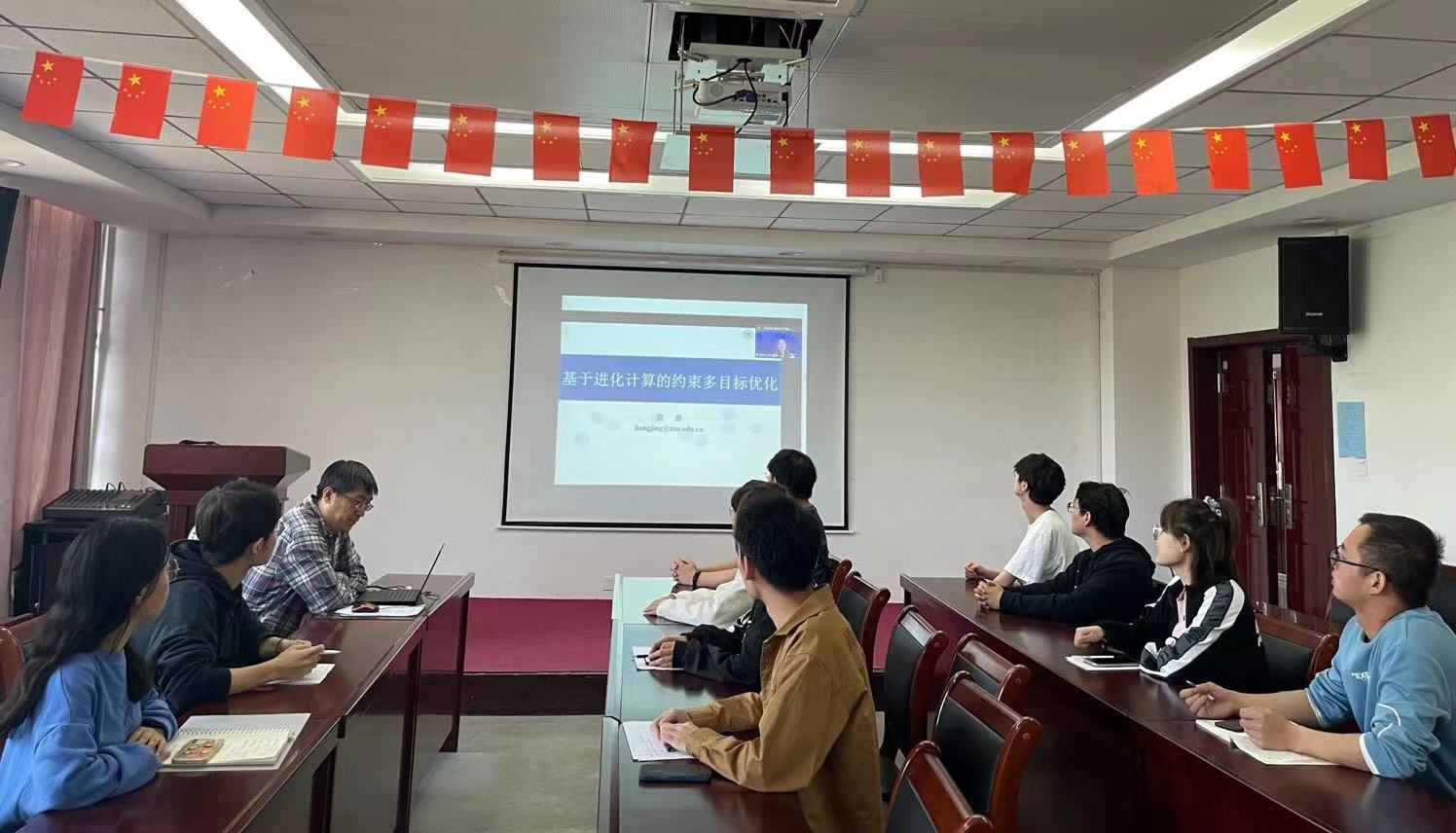 梁教授主要围绕约束多目标优化开展研究,介绍了利用目标函数信息的算法、基于进化多任务的算法以及约束多模态多目标优化及其求解方法三部分内容。梁教授提出的动态偏好选择的约束多目标进化算法、目的引导的双结算约束多目标进化算法、基于小生境机制的约束多模态多目标进化算法等均取得良好的性能,并发表于国际顶级期刊。讲座结束后,梁教授与师生进行了热烈的讨论与交流。
