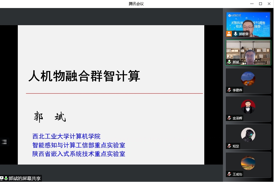 2022年6月2日,应计算机科学与技术学院和科学技术研究院邀请,西北工业大学教授郭斌在线上作了题为《人机物融合智能计算》的学术报告。报告由计算机科学与技术学院郭银章教授主持,pp电子官网160余名师生在线上线下倾听了郭教授的学术报告。