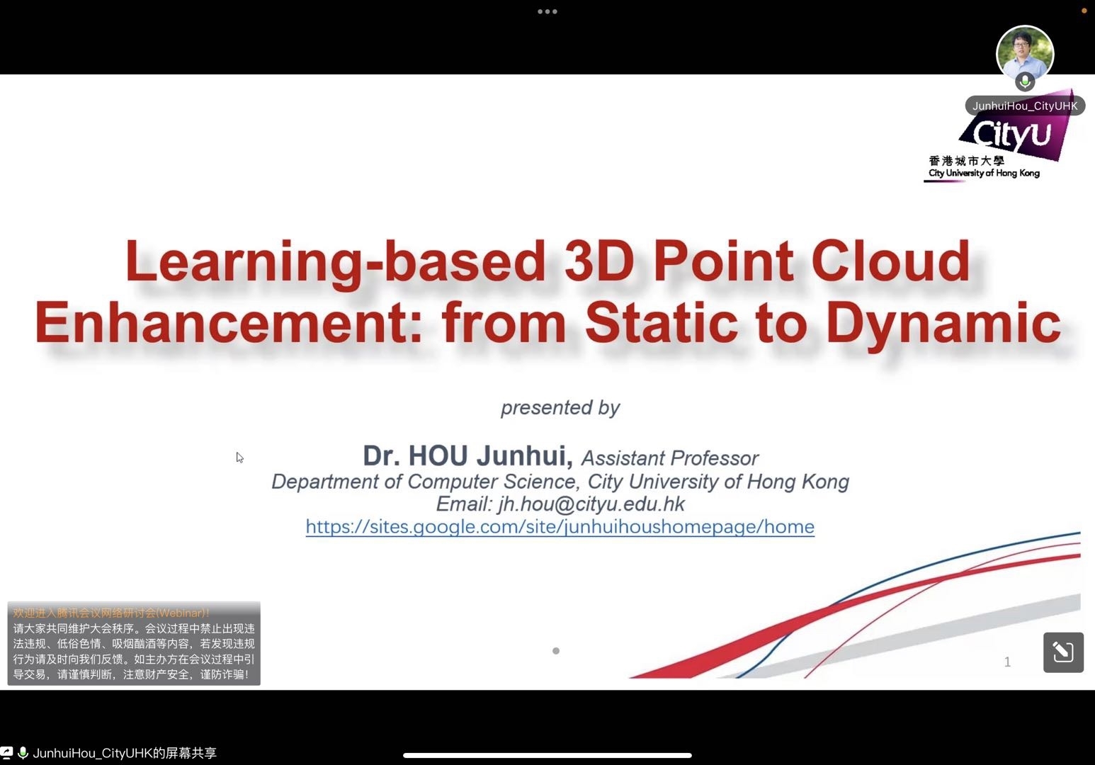 2022年7月8日,应pp电子官网电子信息工程学院和科学技术研究院邀请,香港城市大学计算机科学系助理教授、博士生导师侯军辉在线上作了题为《Learning-based 3D Point Cloud Enhancement:from Static to Dynamic》的学术报告。报告由电子信息工程学院副院长王安红教授主持,百余名师生分别在线上和线下听取了学术报告。