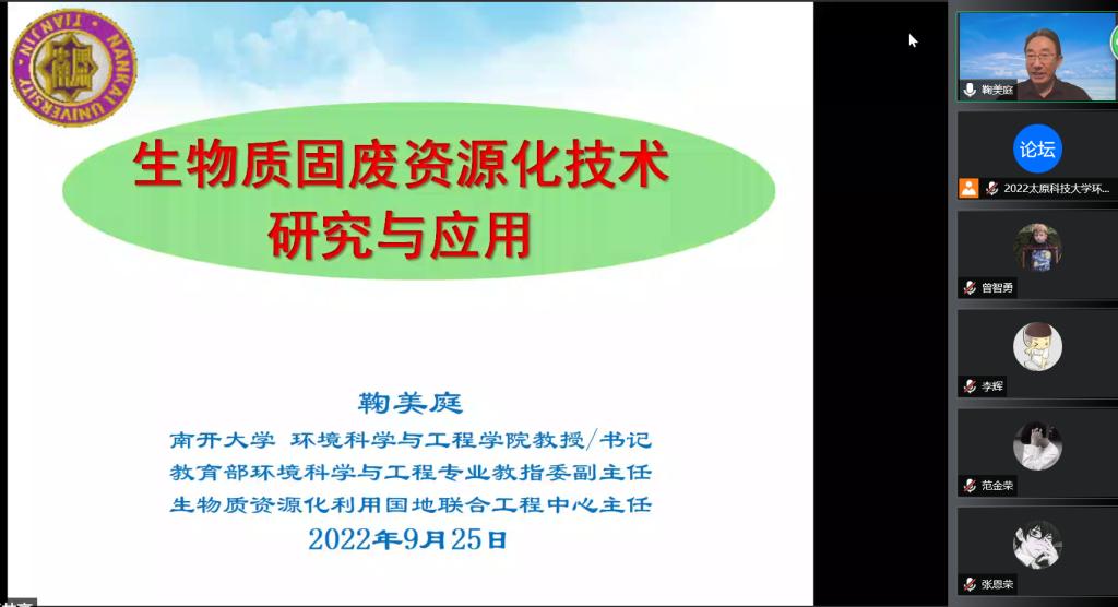论坛学术报告内容涉及大气、水体、固废、生物等领域相关的前沿科学研究成果及产业化应用示范效果。南开大学环境科学与工程学院鞠美庭教授做了题为《生物质固废资源化技术研究及应用》的报告,介绍了生物质固废的肥料化、饲料化、能源化和材料化的技术发展现状,探讨如何构建高活性、高选择性、环境友好的催化体系、如何发展生物质梯级转化利用的新途径以及如何推动相关科技成果转化、如何推动产学研合作。