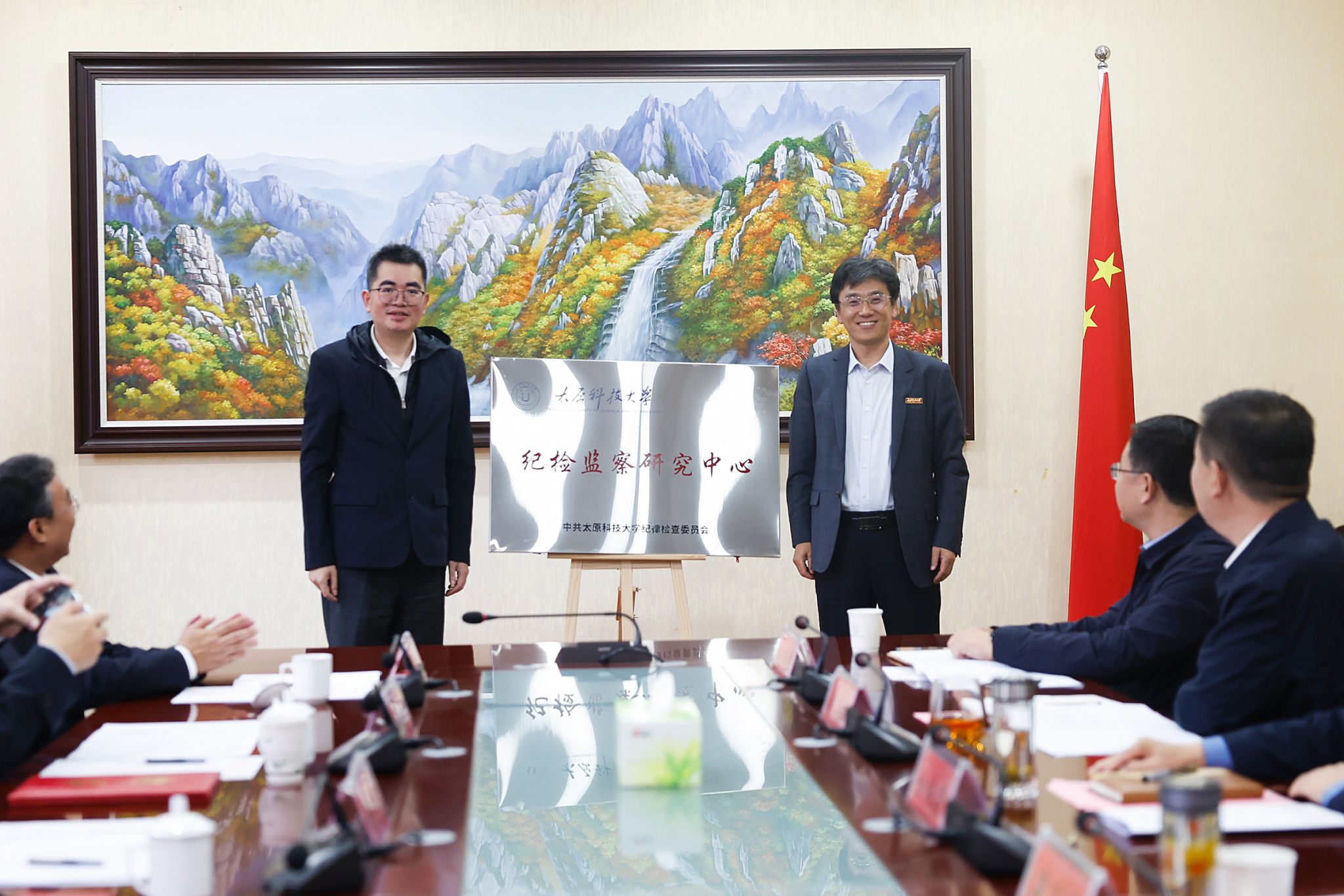 梁卫国、施鹏鹏共同为pp电子游戏平台官网纪检监察研究中心揭牌。