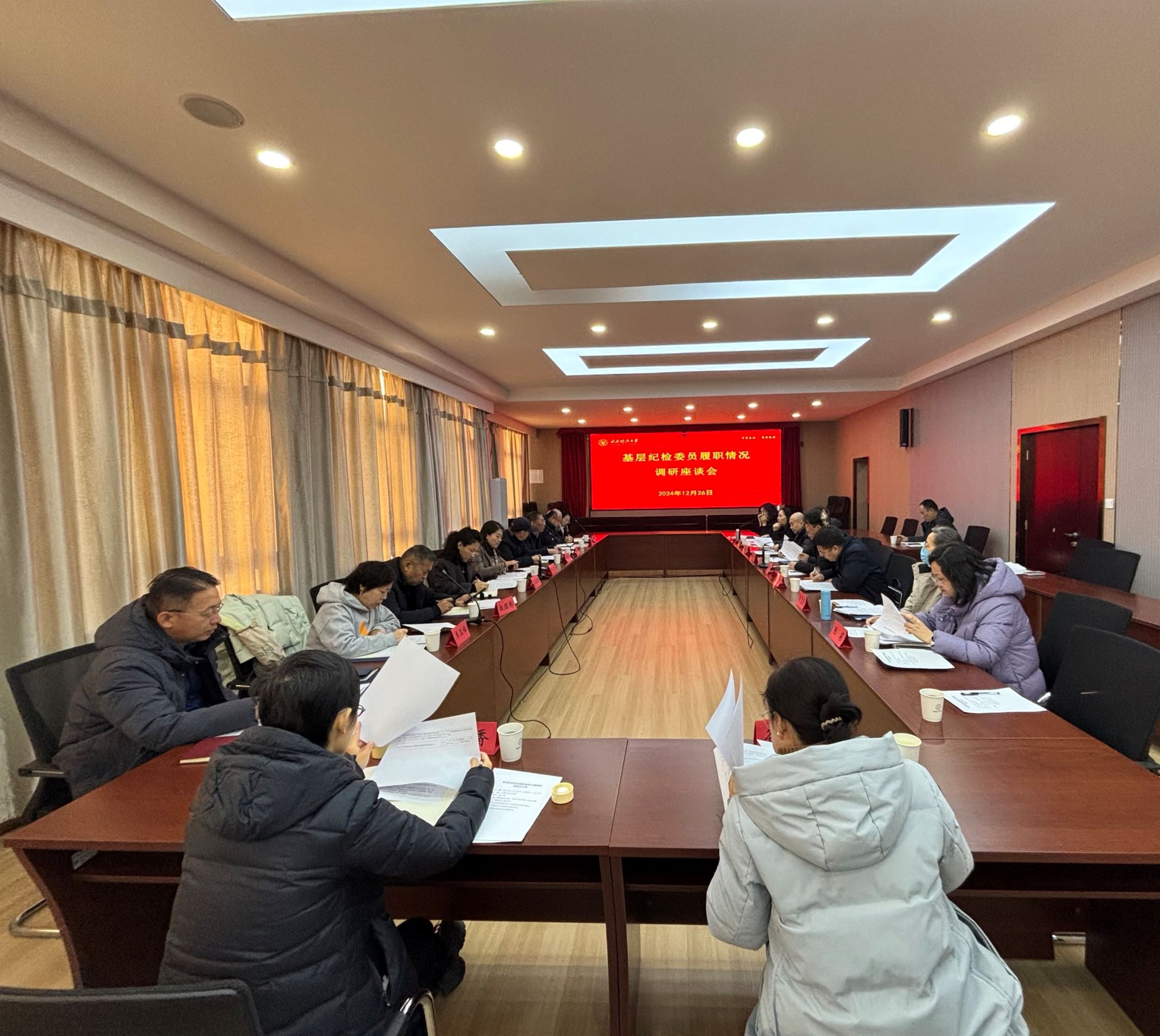 为加强对学校基层纪检工作的指导,着力提升基层纪检委员履职能力水平,推动全面从严治党向纵深发展。12月26日,校纪委在主楼四层会议室召开基层纪检委员履职情况专题调研座谈会。基层纪检委员、纪检监察研究中心执行主任、专职纪检干部参加了会议,校纪委副书记田文婧主持。