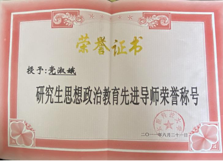 图注:党老师荣获“研究生思想政治教育先进导师”荣誉称号