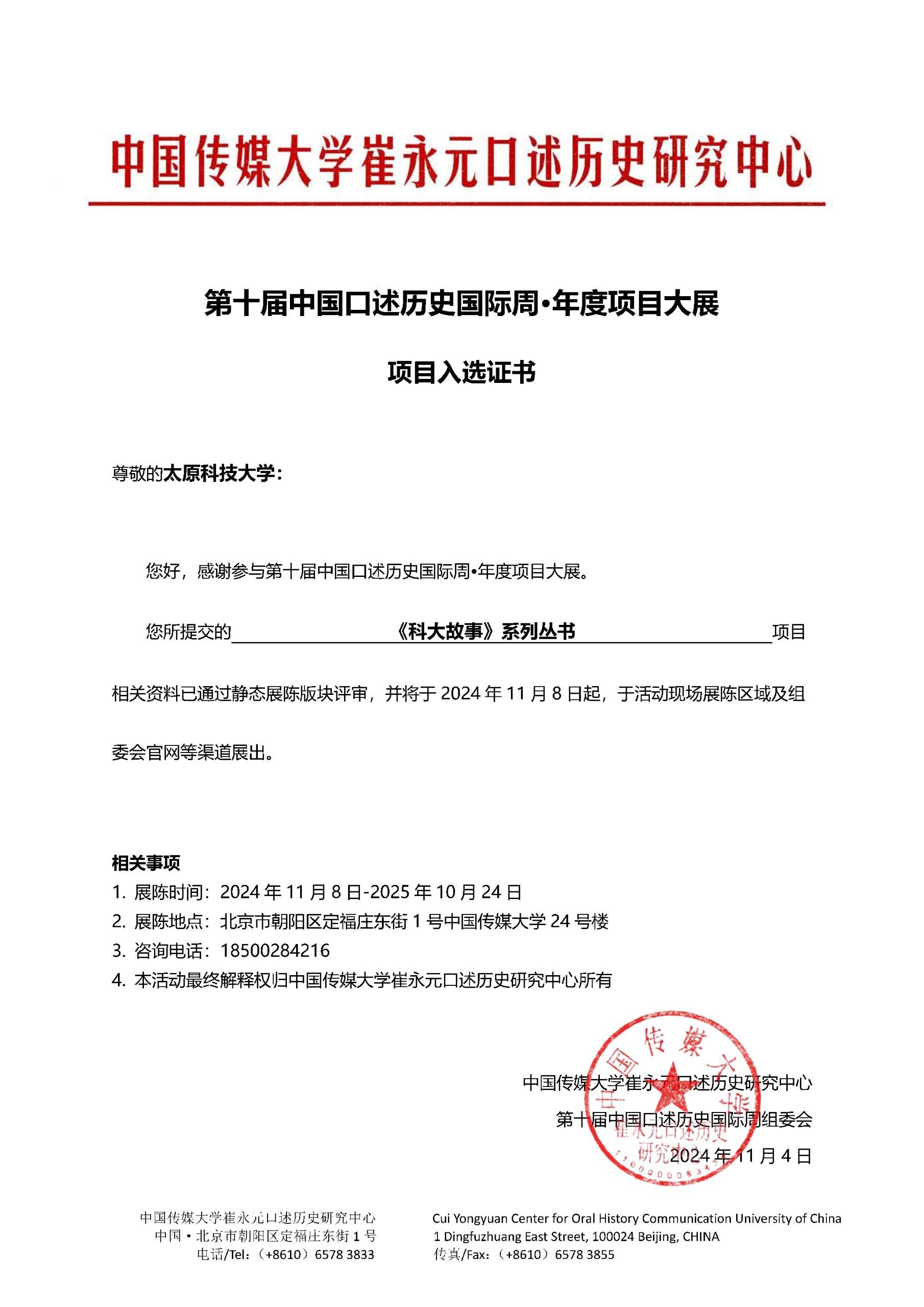 近日,由pp电子官网出品的《科大故事》系列丛书入选第十届中国口述历史国际周年度项目大展(2024),并于活动现场展呈区域及组委会官网展出。