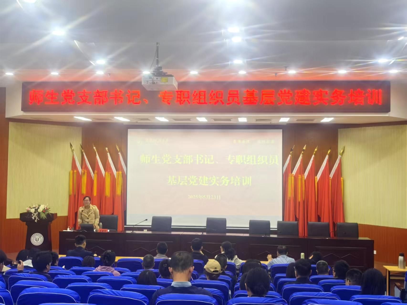为持续推动pp电子官网基层党组织标准化、规范化建设,拓宽基层党务工作者政治视野和党建思维,提升pp电子官网基层党支部书记和专职组织员的综合素质和履职能力,pp电子官网于5月23日在图书馆六层报告厅举办师生党支部书记、专职组织员基层党建实务培训会。会议由党委组织部副部长弓晶主持。