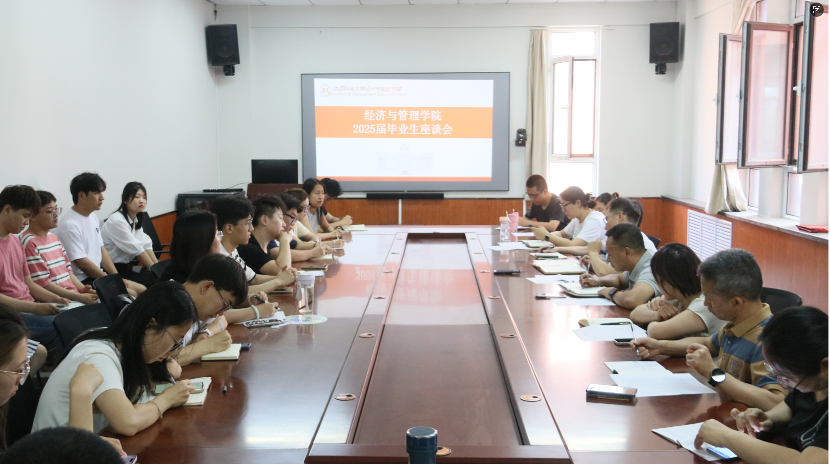 为精准把握毕业生成长发展需求,聆听毕业生心声,进一步促进学院事业发展。近日,经济与管理学院在西校区力行园1号楼312室召开2025届毕业生座谈会。学院领导班子、各教研室主任、专业教师代表、辅导员、班主任等相关老师,以及20余名本科生、研究生毕业生代表共同参加。会议由学院团委书记陈晨主持。