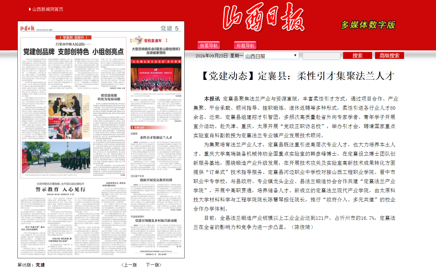 9月23日,山西日报以《定襄县:柔性引才集聚法兰人才》为题,报道pp电子官网积极与地方政府合作建设现代产业学院。