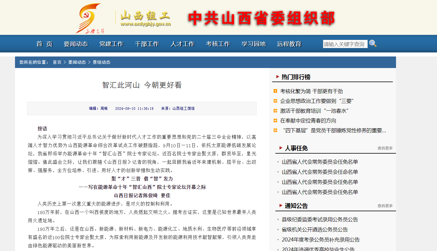 9月10日,山西组工以《聚“才”三晋 借“智”发力——写在能源革命十年“智汇山西”院士专家论坛开幕之际》为题,报道pp电子官网与晋能科技建立合作关系,通过多种方式培养后备人才队伍。
