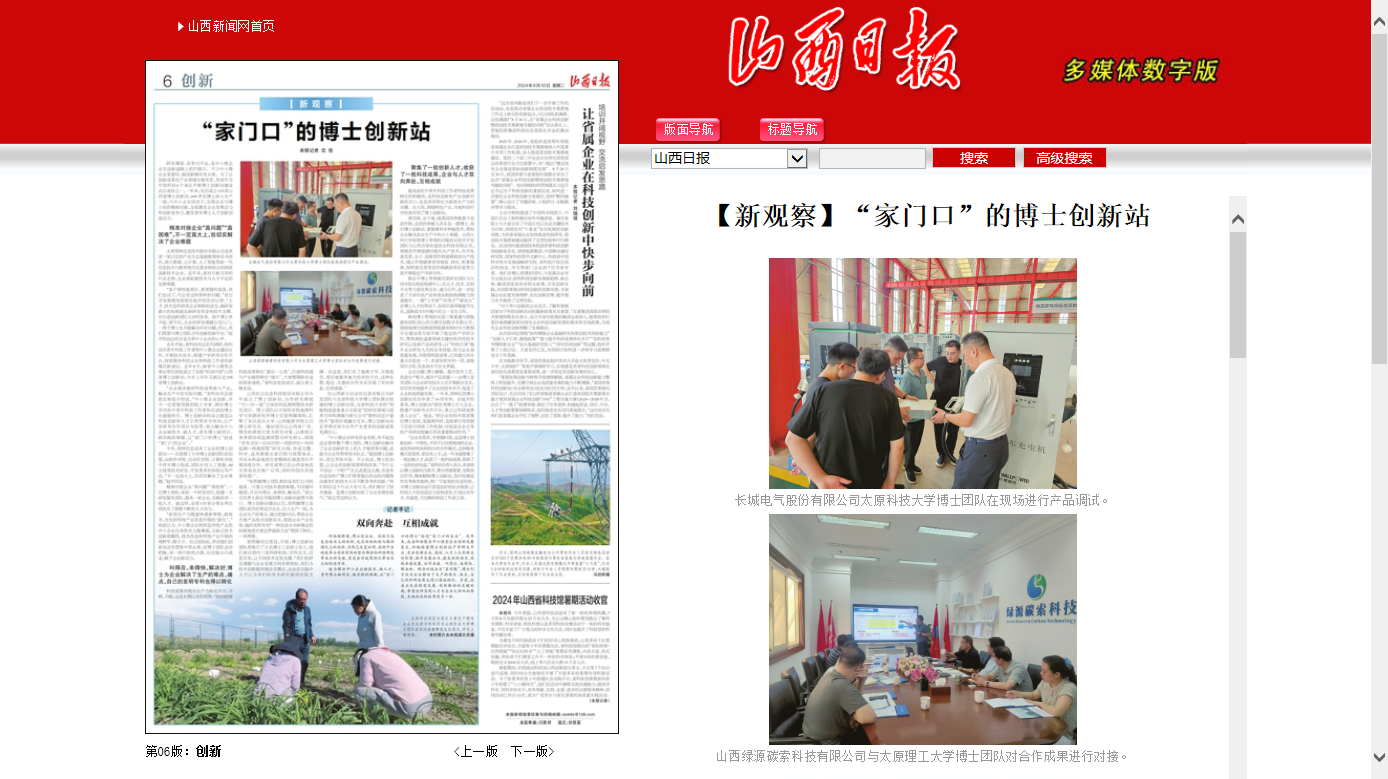 近日,山西日报以《“家门口”的博士创新站》为题,对pp电子官网博士联合企业推进创新成果转化进行报道。