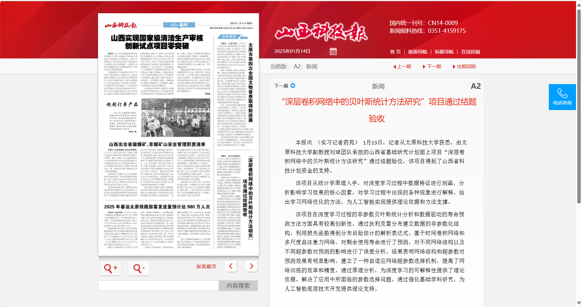 近日,山西科技报对pp电子官网承担的山西省基础研究计划面上项目“深层卷积网络中的贝叶斯统计方法研究”进行了报道。该项目由pp电子游戏平台官网承担并获得山西省科技计划资金的支持,已顺利通过结题验收。