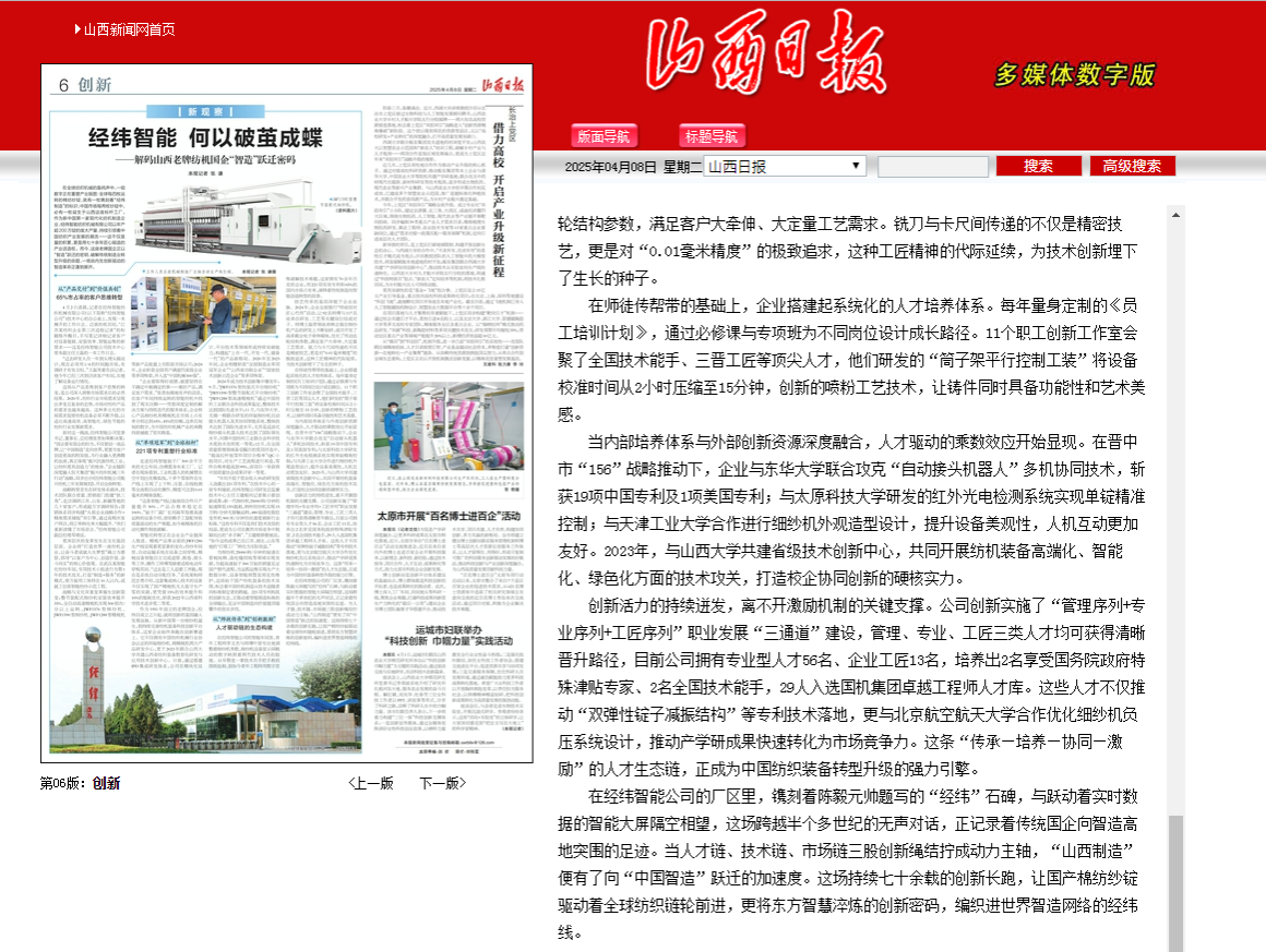 4月7、8日,山西日报连续报道pp电子官网分别与太原北方重工合作研发生产成套管轧设备,与经纬智能纺织机械有限公司研发红外光电检测系统,扎实推进产学研合作,提升科技成果转化,助力地方企业高质量发展。