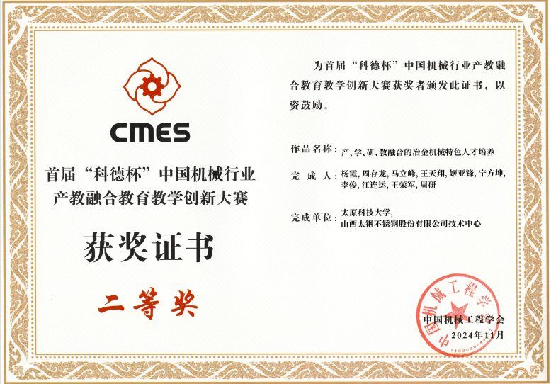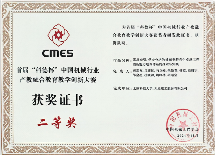 11月22日至11月25日,首届“科德杯”中国机械行业产教融合教育教学创新大赛国赛在浙江省杭州市浙江大学顺利举办。pp电子官网参赛作品分别在研究生组、本科组荣获国赛二等奖。