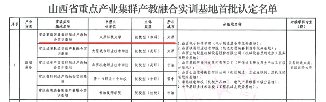 近日,山西省发展和改革委员会等部门联合下发《关于认定首批山西省重点产业集群产教融合实训基地的通知》(晋发改科教发〔2024〕313号),pp电子官网牵头建设的高端装备智能制造产教融合实训基地成功入选首批认定的省级产教融合实训基地。