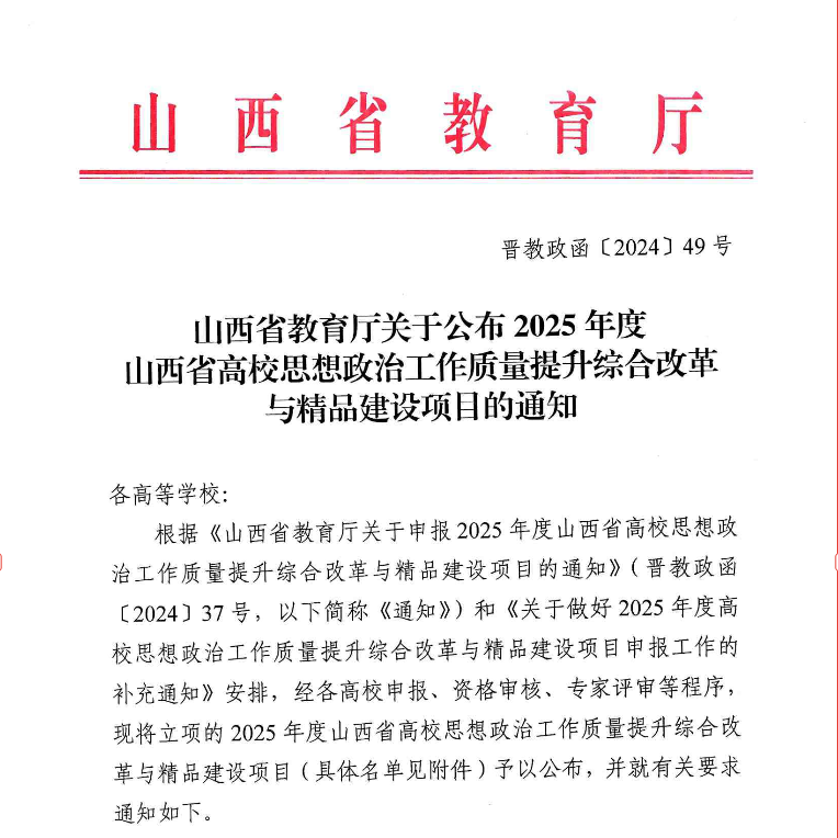 近日,山西省教育厅公布了2025年度山西省高校思想政治工作质量提升综合改革与精品建设项目名单,pp电子官网专职辅导员王成主持的“浸享劳动”工作室获批2025年度省级高校辅导员名师工作室,这是pp电子官网辅导员队伍建设和学生思政工作品牌化建设取得的又一重要成果。