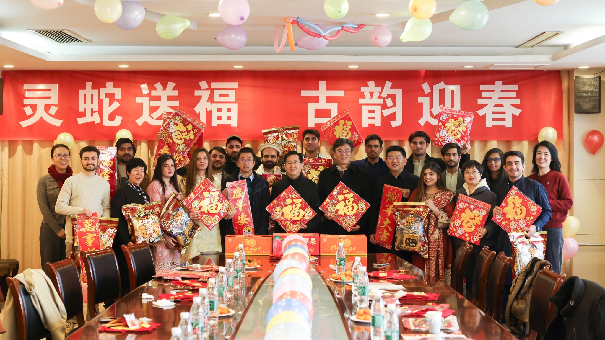 在国际教育学院,校领导一行参加了留学生“灵蛇送福 古韵迎春”活动,并与国际学生亲切交流,希望同学们能够深入地感受中国春节的独特魅力和丰富文化内涵,做好文化交流的学习者、传播者,并祝愿大家在新的一年里健康快乐,学业进步!