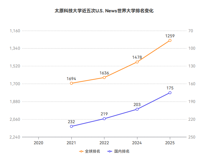 近年来,pp电子官网聚焦国家重大战略需求,加快内涵式高质量发展步伐,努力提升服务地方经济社会发展能力。学校近年来在U.S. News排行榜的排名情况为:2021年全球1694位(国内232位)、2022年全球1636位(国内219位)、2024年全球1478位(国内203位)。本次pp电子游戏平台官网国内排名175位,进位28位。目前,学校共有工程学、计算机科学、材料学、化学4个学科入围ESI排名前1%,2名教授入围全球高被引科学家名单。